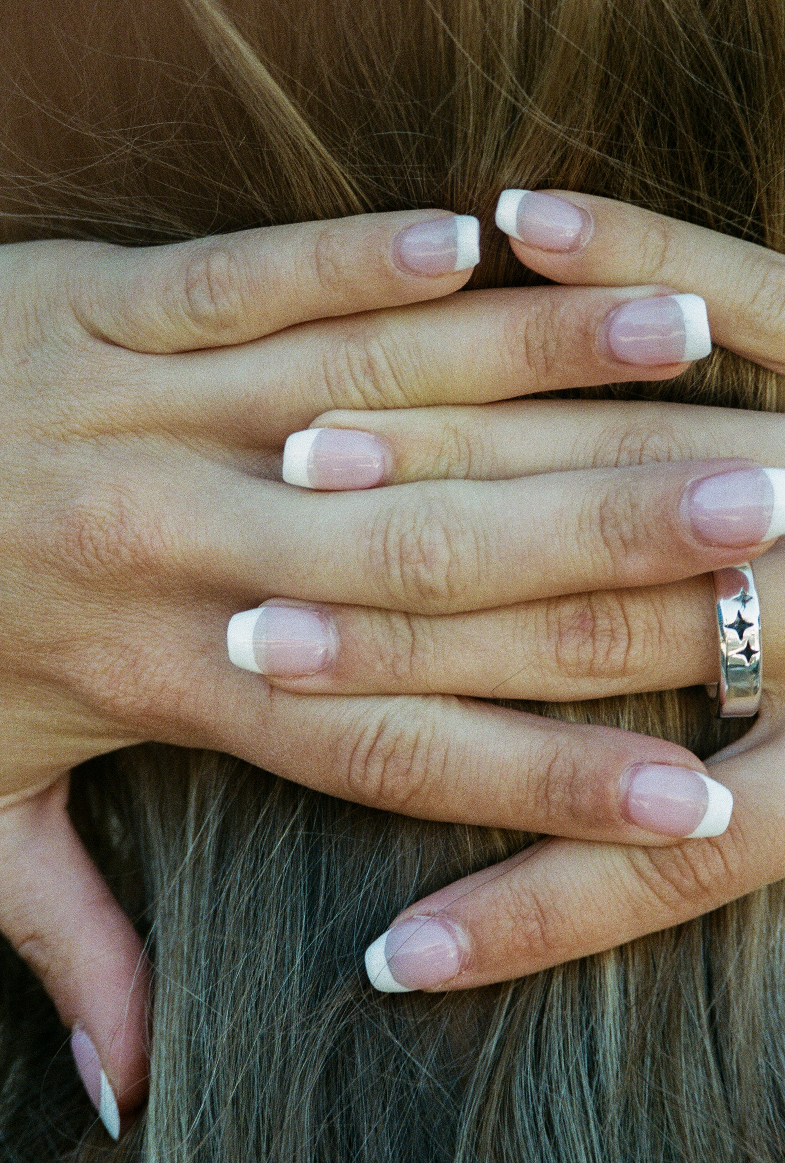 Three sisterly stars, engaged together in a space dance, each passing into the center at one time or another. And on the underside of it all, grooves like a grip -- the shared support that underscores their shine.