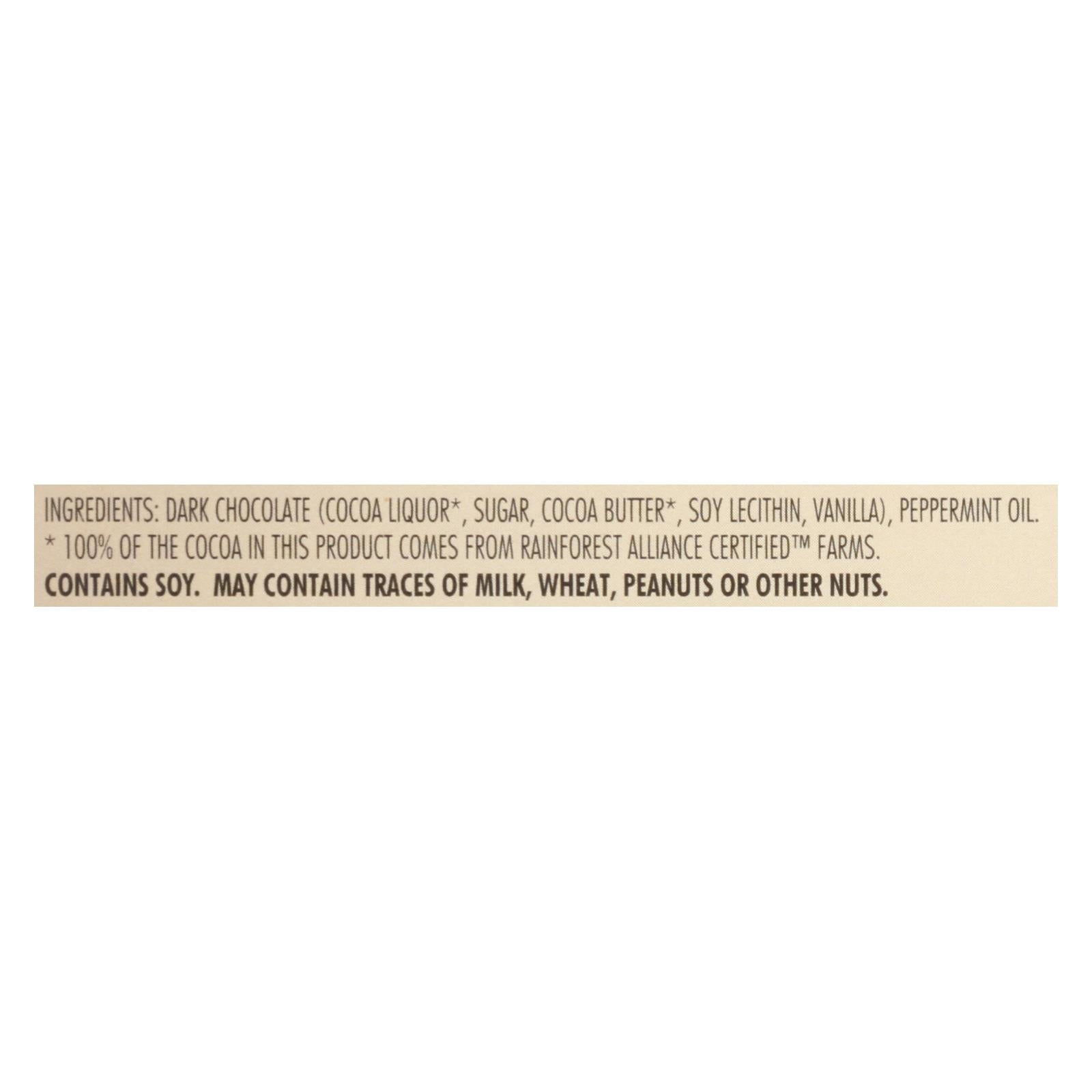 Delight in the luxurious fusion of semisweet dark chocolate and refreshing peppermint oil. Each 3.2 oz bar offers a creamy texture that melts into a cool minty finish, creating a harmonious balance of flavors. Perfect for those who crave a sophisticated treat, this chocolate is crafted using cocoa certified by IMO as For Life, ensuring socially responsible and ethical farming practices.