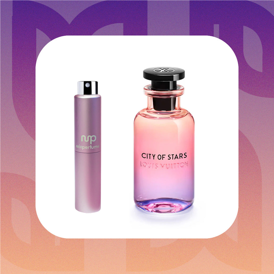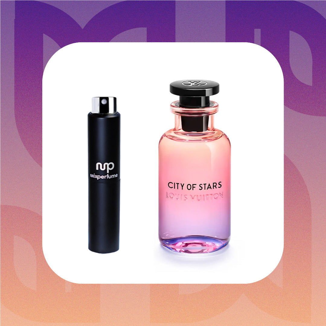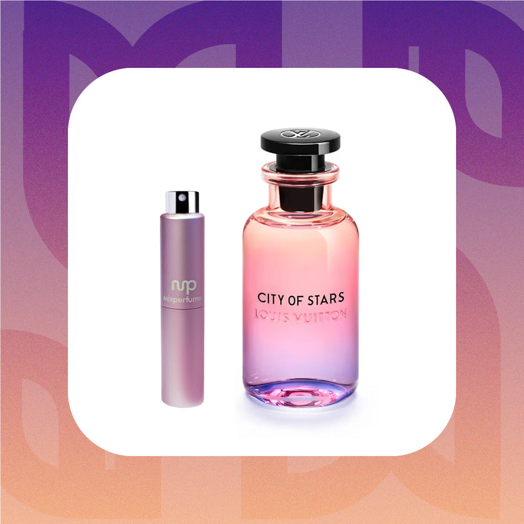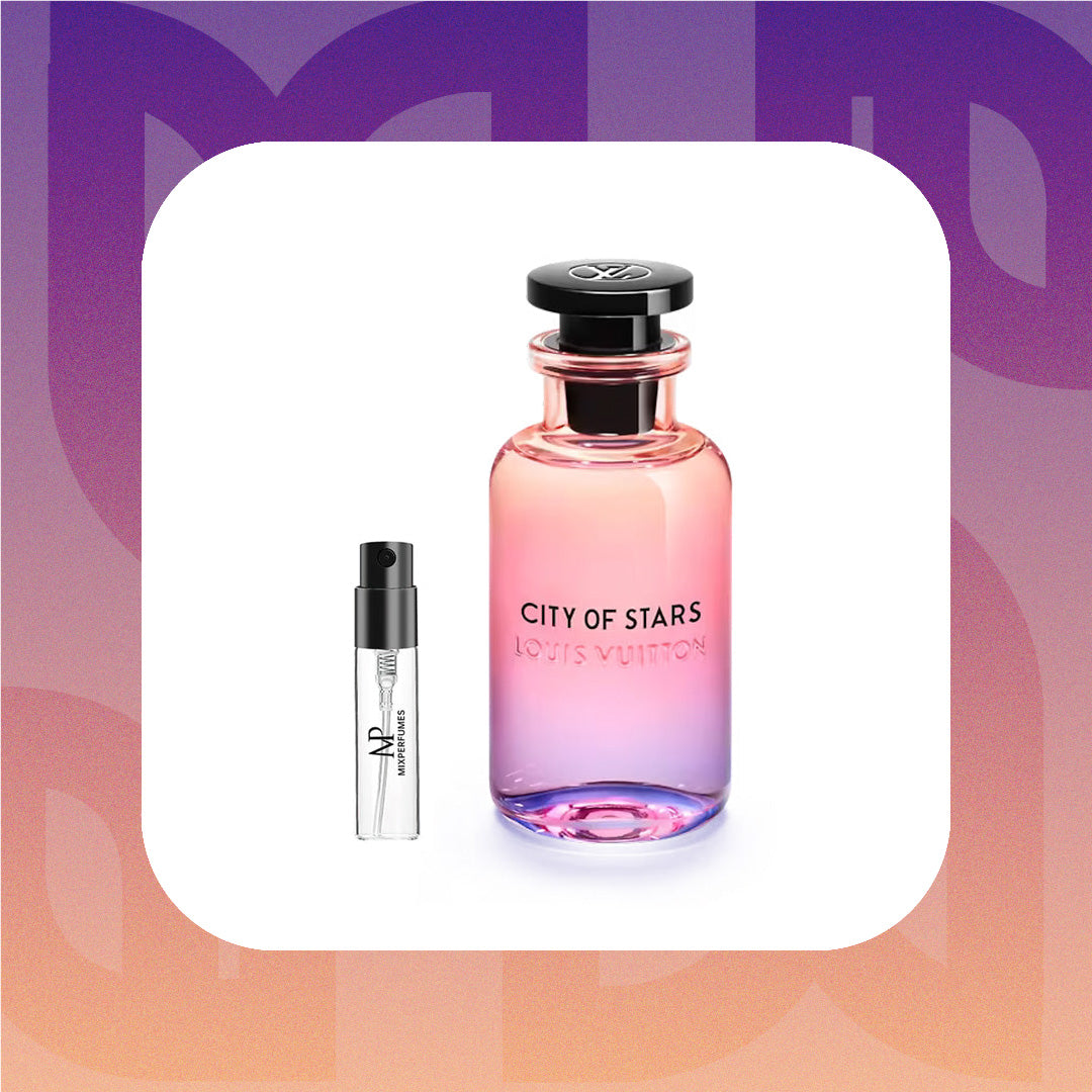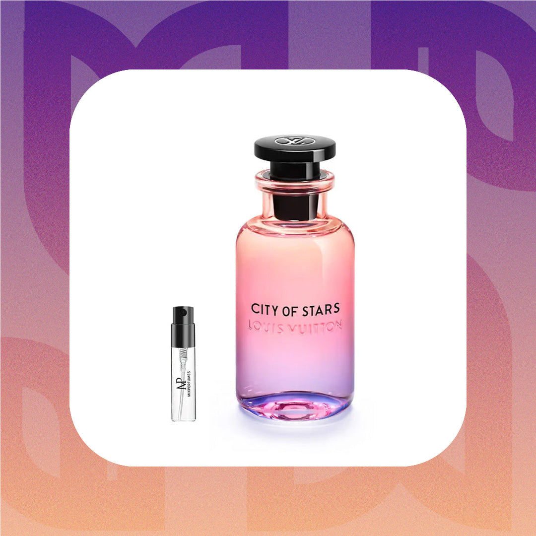 City of Stars by Louis Vuitton captures the dazzling essence of Los Angeles at night. This radiant fragrance is an ode to the luminescence of the city, with a composition that mirrors the diverse and dynamic nature of L.A.'s nightlife. It presents a harmonious blend of crisp citrus, luminous floral, and warm, sensuous undertones. Experience the radiant and dynamic scent of Louis Vuitton City of Stars sample & travel size options.