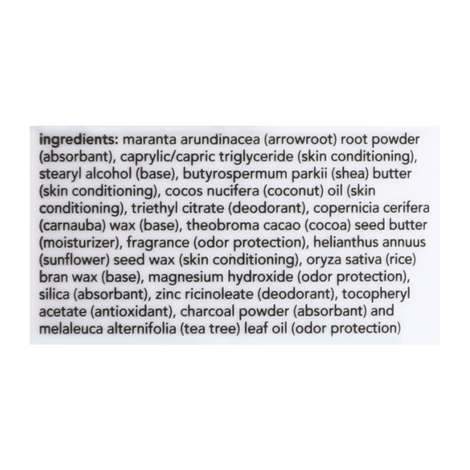 Stay confidently fresh all day with the power of activated charcoal in this 2.6 oz deodorant, crafted in Canada. This vegan-friendly deodorant is formulated with a unique blend of natural ingredients to provide superior odor protection and skin conditioning. It combines the absorbent properties of arrowroot and the soothing effects of shea butter and coconut oil.
