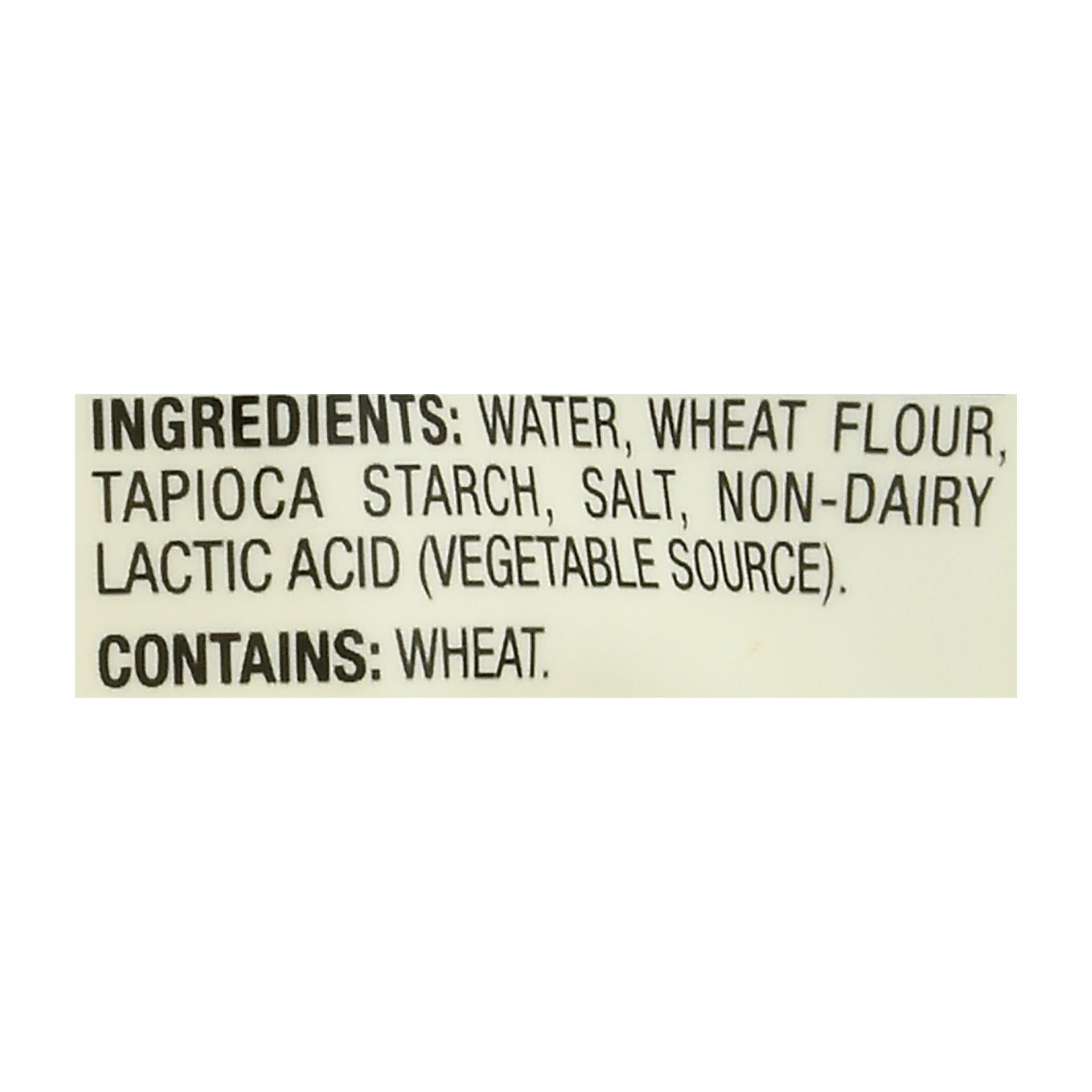 • Made with high-quality ingredients: water, wheat flour, tapioca starch, salt, and non-dairy lactic acid