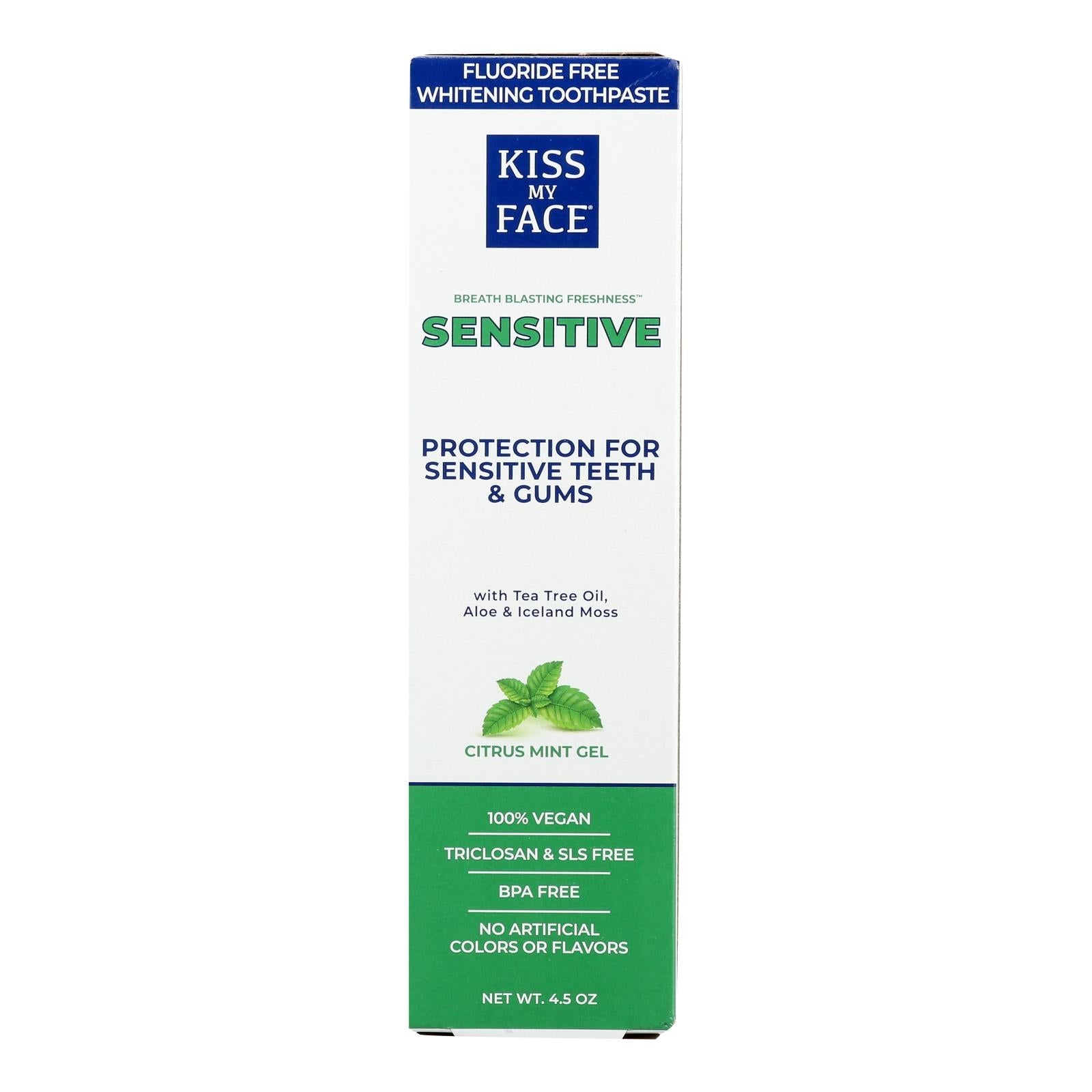 Discover the natural way to combat tooth and gum sensitivity while keeping your smile bright with this fluoride-free gel toothpaste. Formulated with the soothing properties of tea tree oil, xylitol, and aloe vera, this 4.5 oz toothpaste provides effective oral care without the use of harsh chemicals like triclosan and SLS. The refreshing combination of orange and peppermint flavors will leave your mouth feeling fresh and clean.