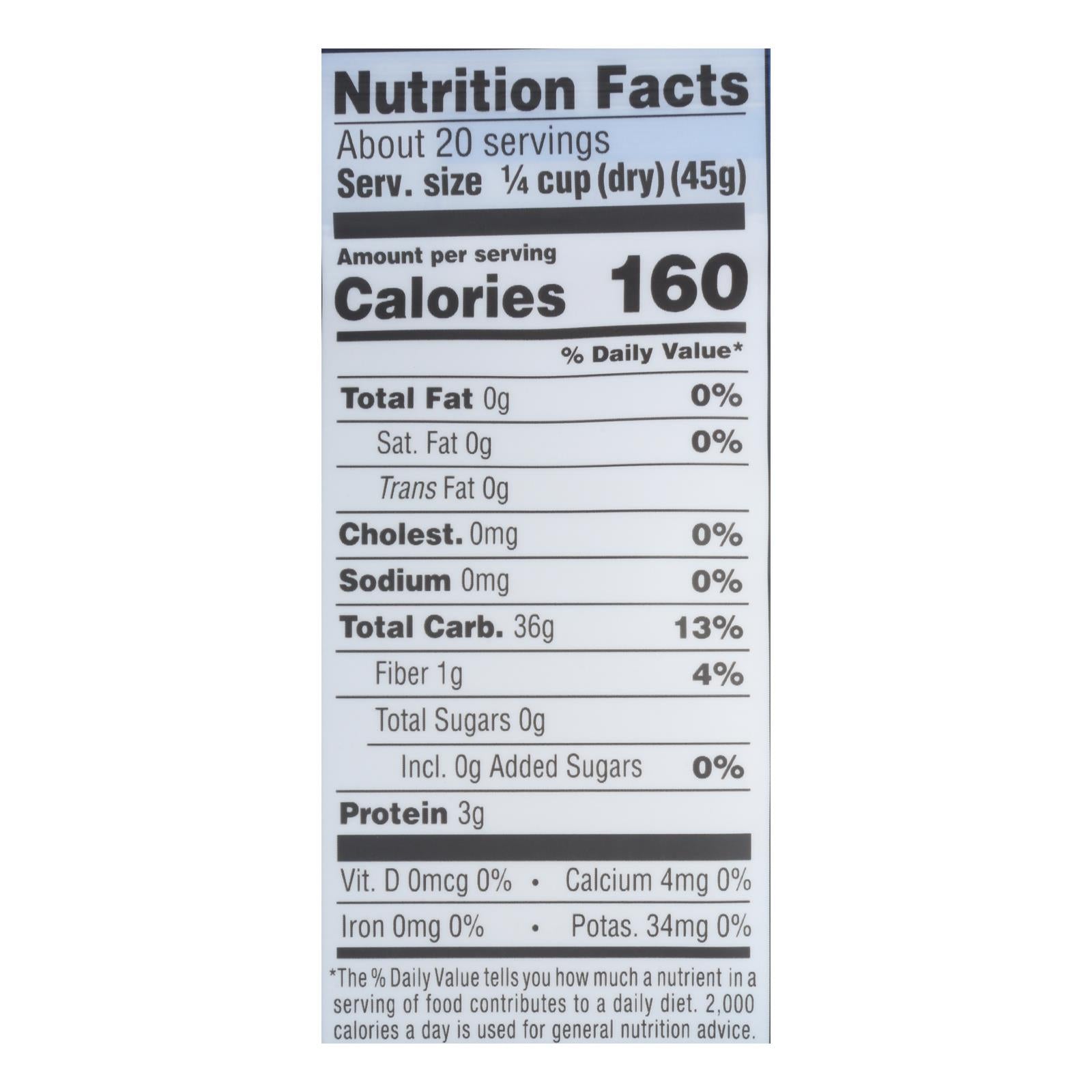 - Contains six 2 lb. bags, each with 20 servings