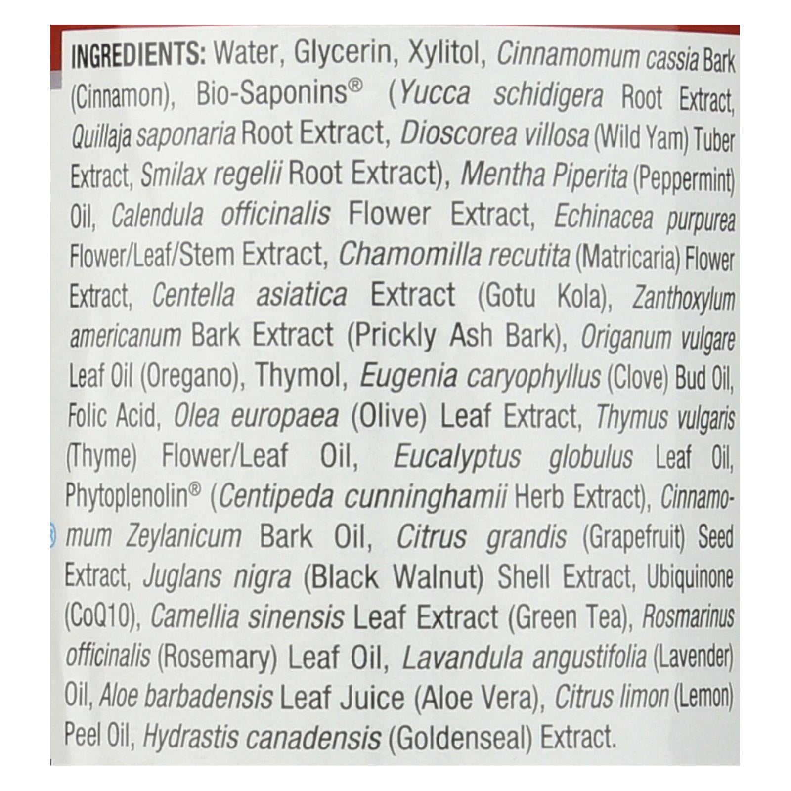 Embrace a refreshing way to care for your oral health with this alcohol-free, gluten-free, and fluoride-free mouthwash. Infused with the invigorating blend of cinnamon and mint, it effectively cleanses your mouth while leaving your breath pleasantly fresh. Key ingredients like CoQ10, oregano, folic acid, and clove are thoughtfully incorporated to support the vitality of your teeth and gums. The unique herbal extract, Phytoplenolin, plays a crucial role in promoting cell vitality, making it an essential addition to your daily oral care routine. Keep this 16 fl. oz. bottle handy and enjoy the benefits of: