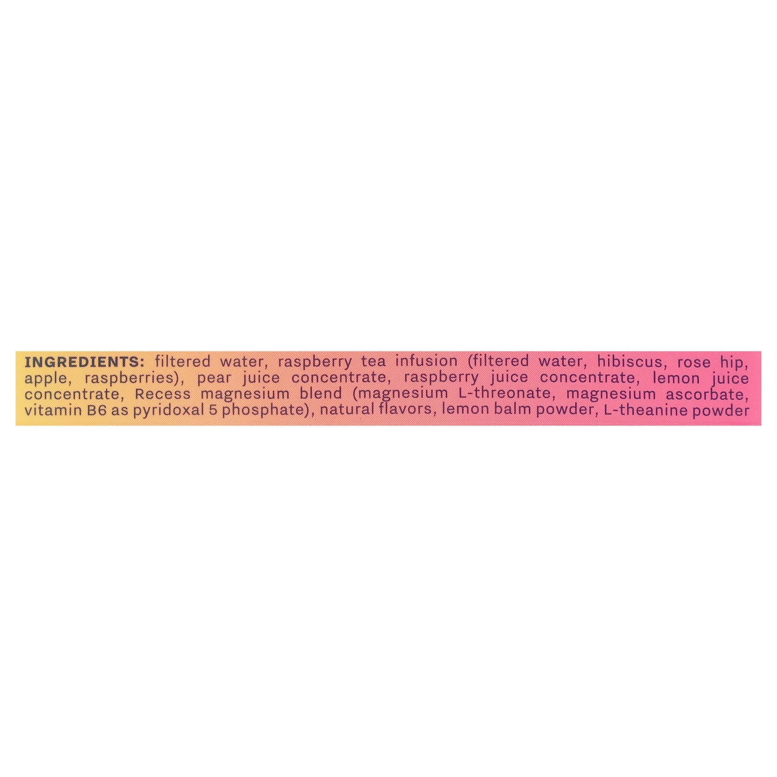 Calm cool collected. Recess - We canned a feeling a sparkling water for brighter days with magnesium, adaptogens & real fruit to get you to that place you want to be. Magnesium L-threonate a form of magnesium for the brain. Adaptogens L-theanine & lemon balm to help maintain balance. Take a recess. Create a moment in time do with it what you wish calm cool collected. An antidote to modern times.